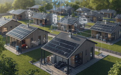 • Гибридные инверторы и современные накопители энергии (ESS) с BMS в каждом доме.