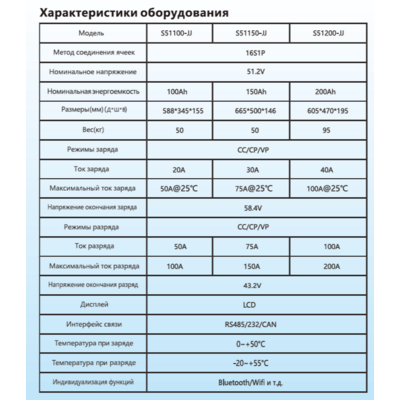 Накопители энергии 51,2В 100-300А*ч для жилых и производственных объектов